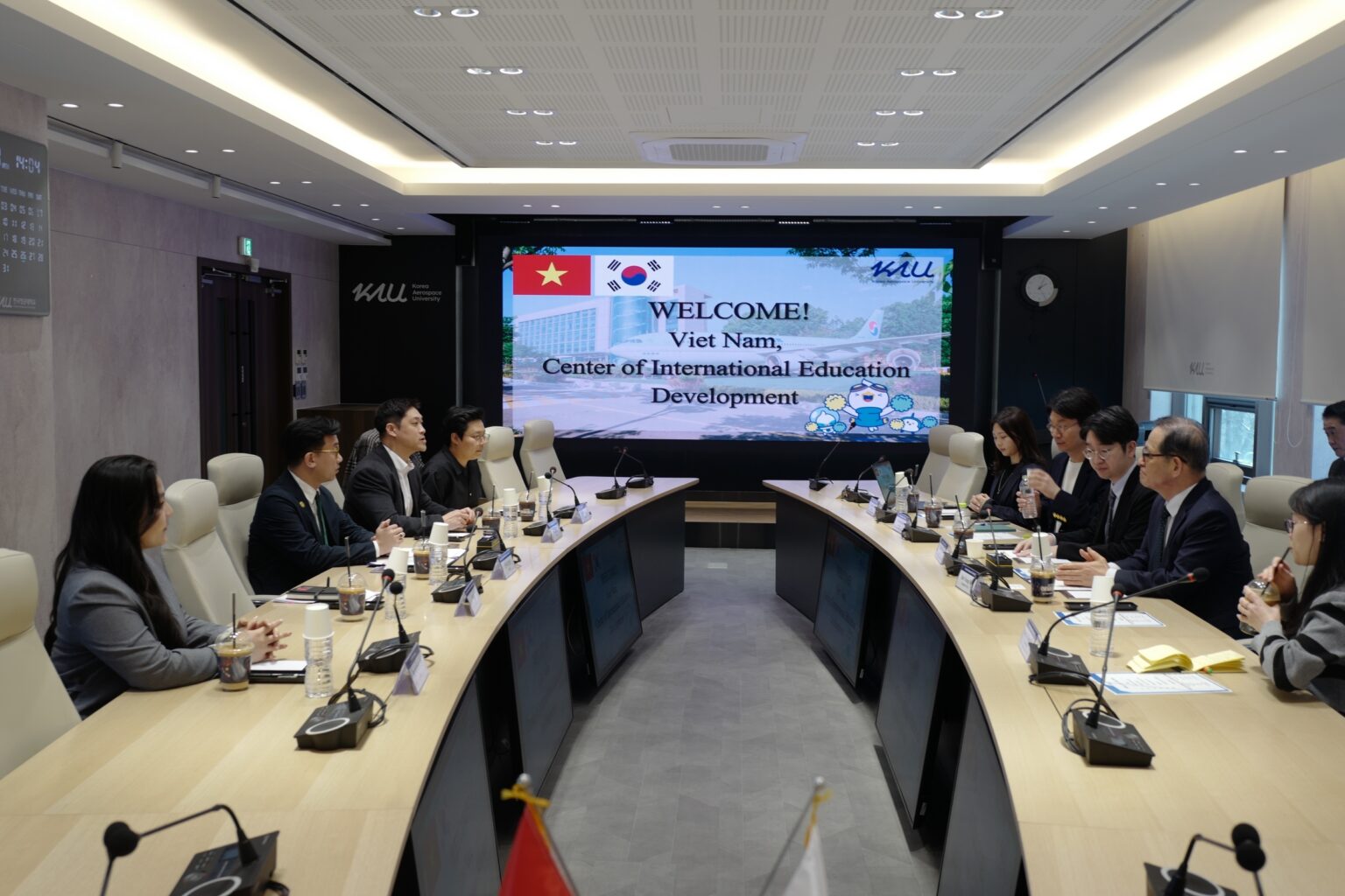 Ngày 26/3, Trung tâm Phát triển Giáo dục Quốc tế (CIED) đã có chuyến thăm và làm việc tại Đại học Hàng không vũ trụ Hàn Quốc - Korea Aerospace University (KAU). Trong khuôn khổ chuyến thăm, hai bên đã chính thức ký kết Thỏa thuận hợp tác về việc thu hút sinh viên quốc tế.